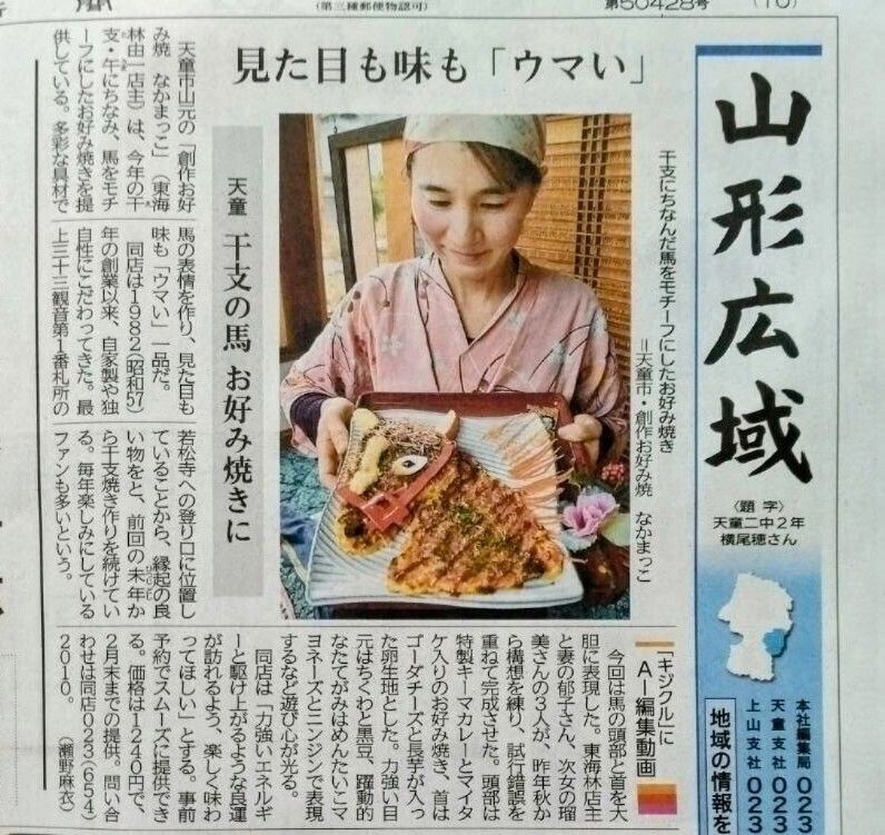 1/22(木)の山形新聞の朝刊に載せていただけました🐴